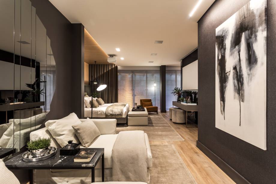 A arquiteta Viviane Loyola apresenta soluções para o bem-morar em 75m². Ela aposta em um layout limpo e revestimentos como mármore, piso vinílico e painéis de MDF, além de móveis sob medida. Tudo para trazer funcionalidade ao espaço que integra área de descanso, estudo, closet e banho.
